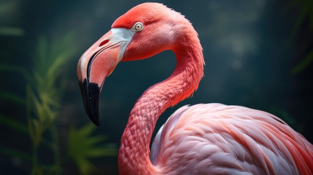 Close-up of elegant pink flamingo in natural habitat