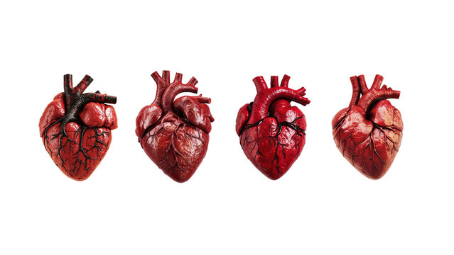 Set Realistic Models Of The Human Heart Isolated on Transparent Background