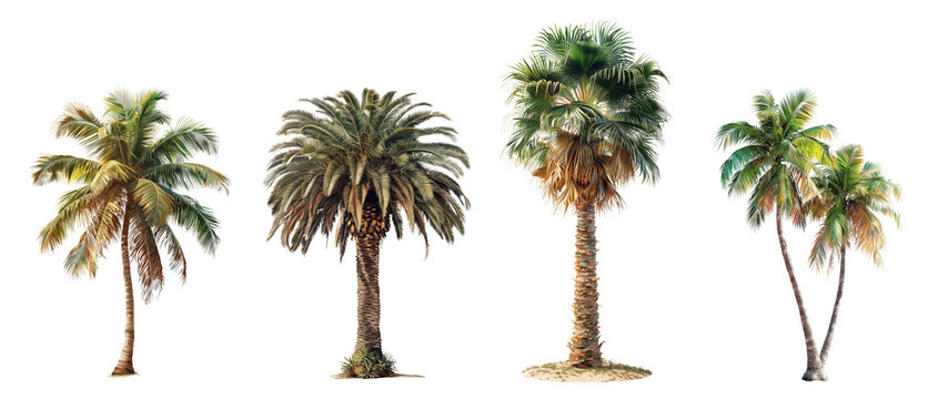Palm tree set isolated on transparent background. Generative AI
