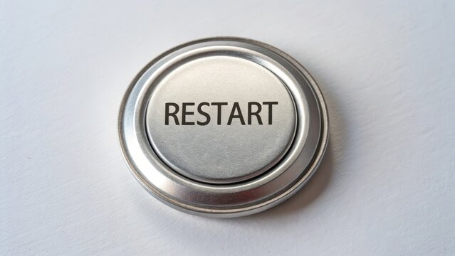 Restart Concept A Golden Button Prompting System Reboot in a Blurred Office Backdrop