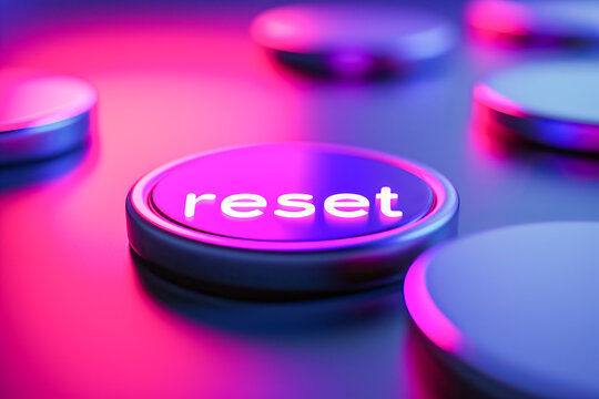 Glowing 3d 'please reboot' text in neon futuristic tunnel