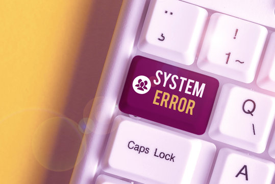 Text sign showing System Error. Business photo text instruction that is not recognized by an operating system White pc keyboard with empty note paper above white background key copy space