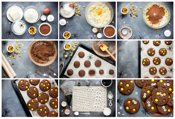 Chocolate Halloween cookies collage recipe step by step