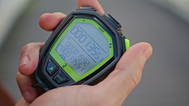 Timer in a professional tape recorder while recording studio sounds. Close-up of the screen with the countdown