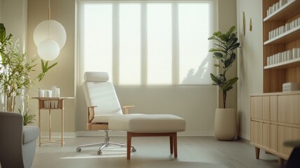 Young woman resting in sun on hospital recliner with nurse watching, serene recovery