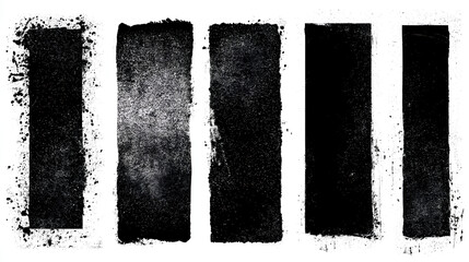 Set of grunge rolled ink stamp textures handmade with brayer Letterpress vintage rough rectangle vertical backgrounds Linocut relief printing shapes vector illustration isolated