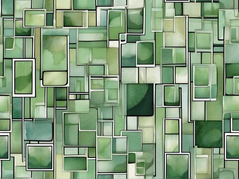 Abstract light pastel green watercolor rectangles and squares painting design background in seamless repeating pattern from Generative AI