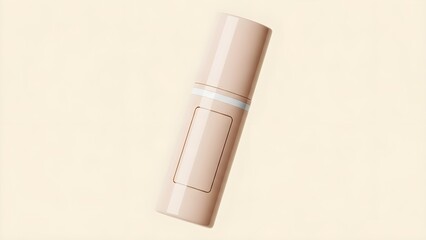 Minimalist peach-toned cosmetic applicator tube featuring a slender white band and recessed rectangular panel floats gracefully against a soft cream background emphasizing clean beauty product design.