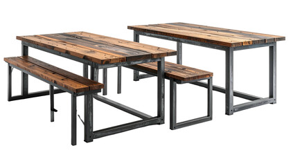 An aged, weathered rectangular wooden table or low bench with four short, sturdy legs, isolated on white