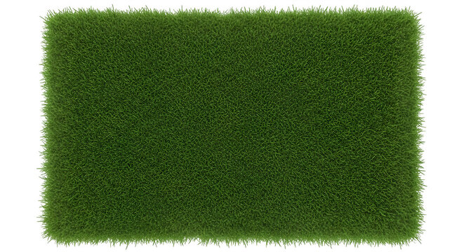Rectangular patch of dense, vibrant green artificial grass isolated on transparent background