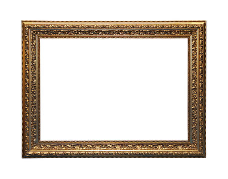 Set of antique golden rectangular picture frames, cut out