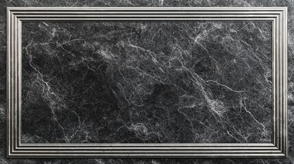 A rectangular metallic frame outlines a dark, veined marble surface, a sophisticated minimalist composition