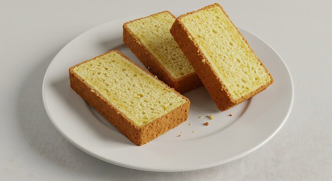 Freshly baked slices of bread on a white plate food photography concept