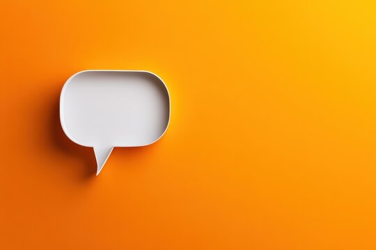 A rectangular white speech bubble occupies a bright orange background, emphasizing conversation and the importance of clear communication in modern times.