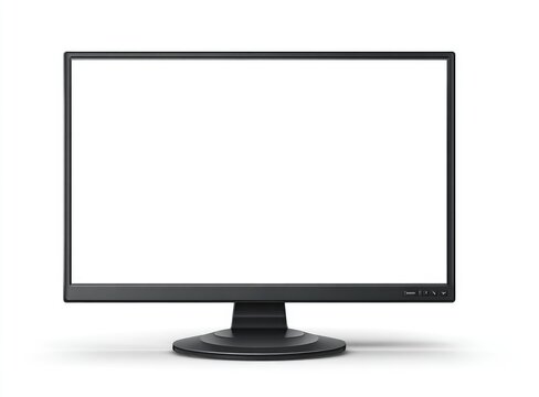 A black, rectangular tablet with a blank white screen, is positioned at an angle on a white surface, casting a soft shadow