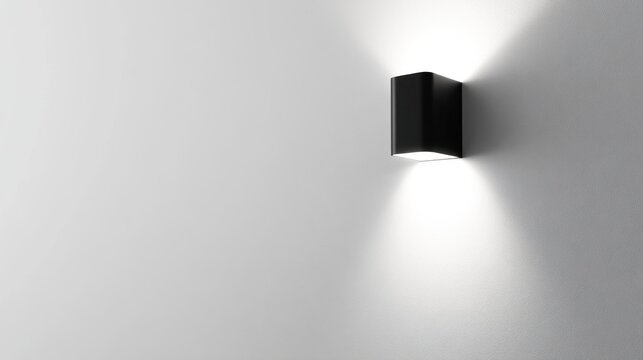 Rectangular wall sconce casting symmetrical light cones on pastel pink wall