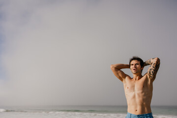 A young man in high spirits recuperating at home with a warm beverage. Concept Wellness, Relaxation, Recovery, Comfort, Lifestyle