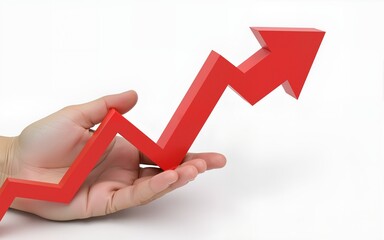Red 3D arrow pointing up on a white background symbolizing business growth and success concept illustration
