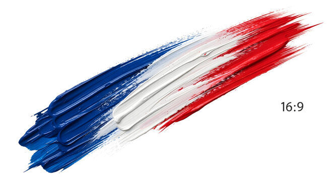 Brush stroke of blue, white, and red colors with the numbers 16:9 on a white background.