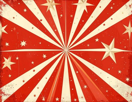 Grunge, vintage-style backdrop features red and white stripes radiating outwards from a central point