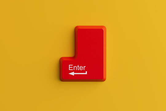 Large Red Enter Key Button from Computer Keyboard. 3d Rendering
