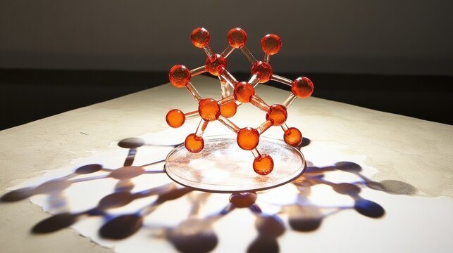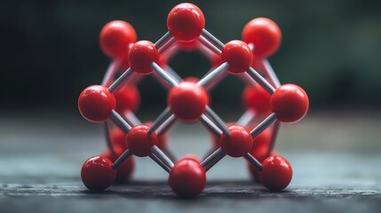 Abstract molecular structure with red and blue energy threads connecting glowing spheres in deep space, symbolizing scientific connectivity.