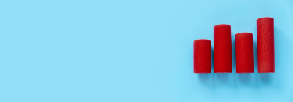 Business charts. Company financial report. Goal for business, bank, finance, investment, money. Quarterly report concept.  Red bar chart. Blue banner with copy space.