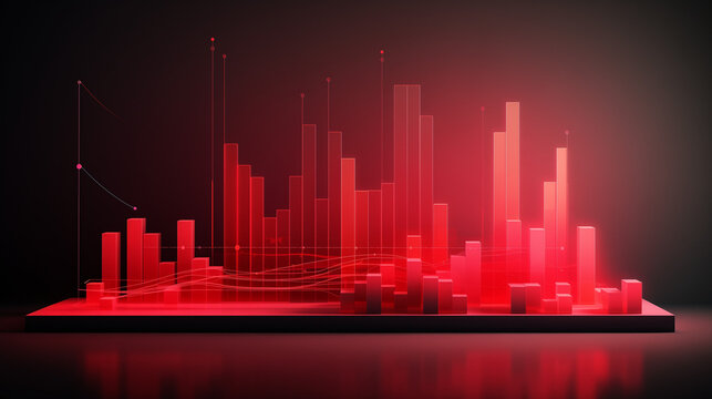 Graph on the screen, Red digital graphs and bar charts front view, Ai generated image