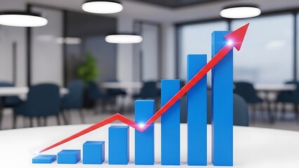 Rising bar graph with statistics in blue background symbolizing economic growth