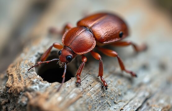 Colorful insect on tree bark in nature