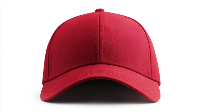 A single red baseball cap with no logos or decorations, displayed on a clean white background. with copy space image. Place for adding text or design