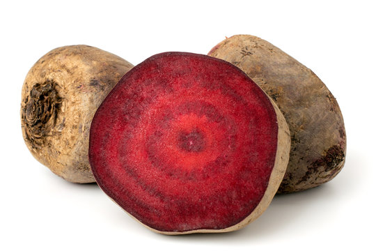 Red beets and half, isolated.
