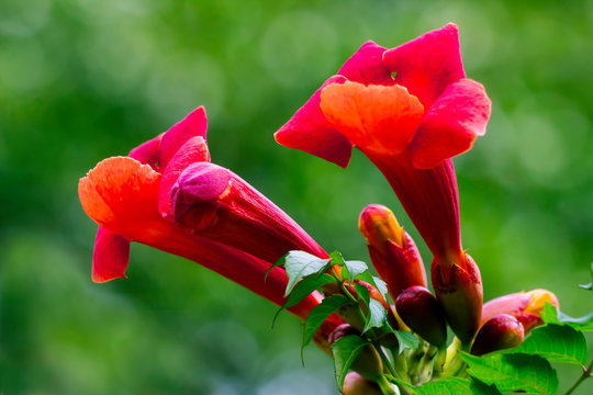 Two beautiful red bells on a brilliant background closeup with multicolored glittering garlands and snowflakes