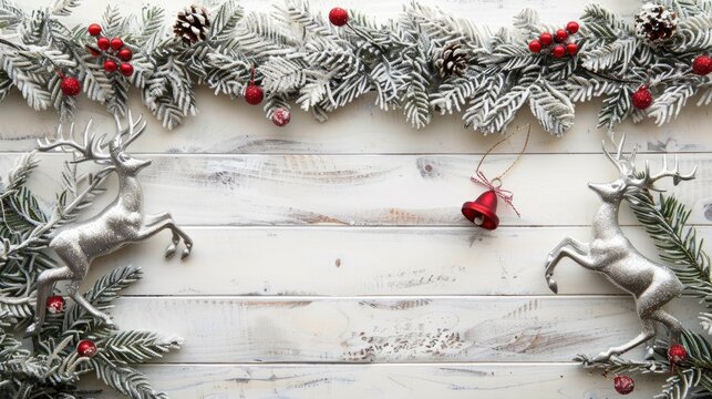 Celebrate the joy of Christmas with beautifully adorned red bells hanging amidst a snowy forest evoking holiday cheer.