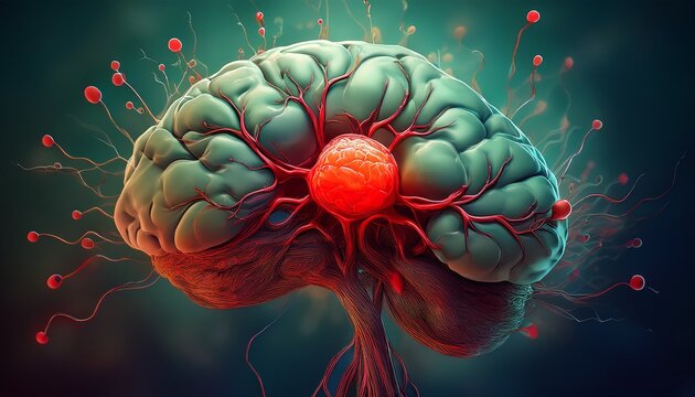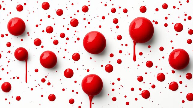 Red and white background with red dots and a red blob in the middle. The red blob is surrounded by red dots and it looks like it's dripping. The image has a playful and fun mood