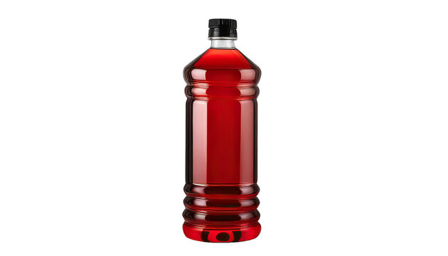 a red bottle with oil on it, isolated on a transparent background. PNG cutout or clipping