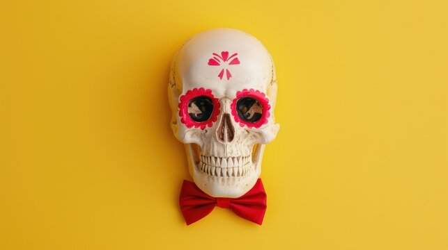 Elegant Red Bowtie with Floral Design on Dark Brown Fabric