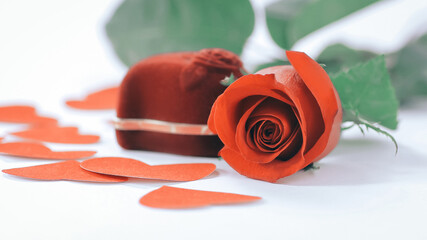 ring in red box with a red rose on the white background