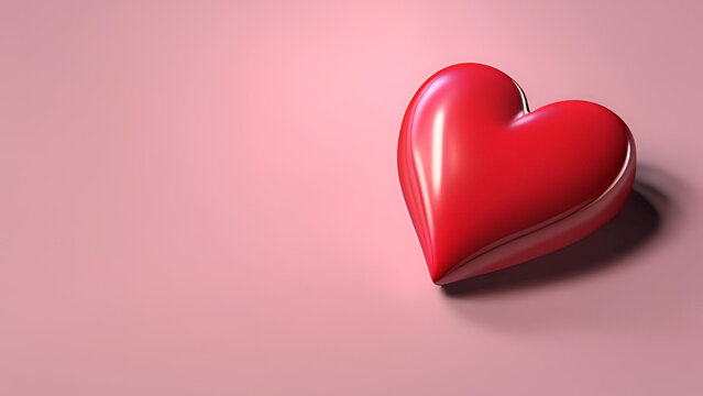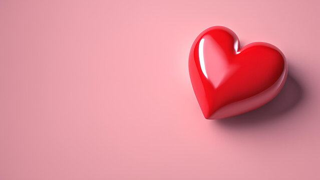 3d red heart on a Pink background. Greeting banner for love day with cute red bubble 3d effect levitation heart. Valentine's Day concept.