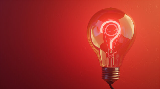 A light bulb lights up on a red background with black patterns