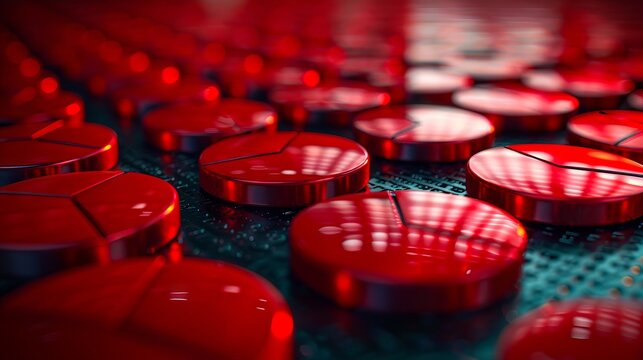 Floating glossy red capsule button among chrome browser windows, 3d ui control mockup