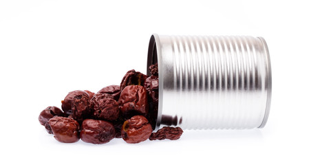 chinese jujube or Dried red date in Aluminum canned isolated on white background