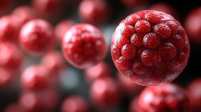 Abstract visualization of red and pink cells on vivid background
