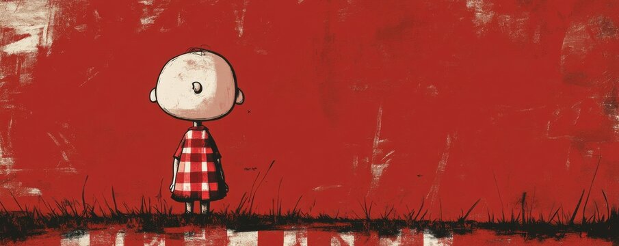 Illustration of a child in red checking pattern on a striking red background