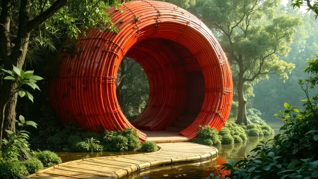 Futuristic circular 3d light display in vibrant colors