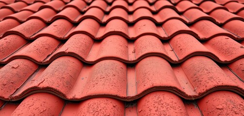 Rough, textured surface of red clay roof tiles, close-up,  red,   close up
