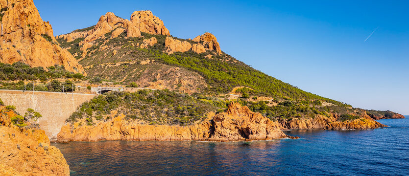The rugged red cliffs of Punta Rossa, part of the Scandola Nature Reserve, UNESCO World Heritage Site, Porto, Corse-du-Sud