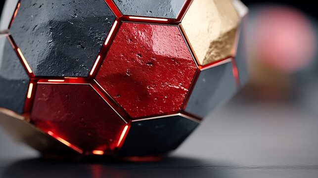 Abstract geometric design with metallic and red components, creating a tunnel or perspective effect