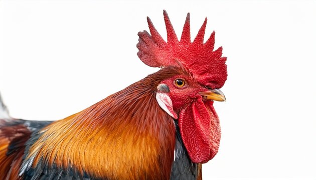 vibrant rooster with red crest on white background for farm design