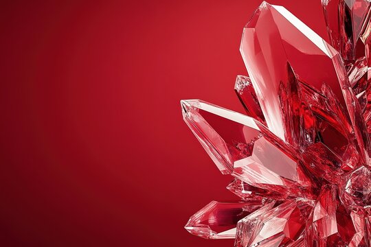 Vibrant abstract red crystal background with diamond-like facets. 3D rendering showcases intricate details. AI
